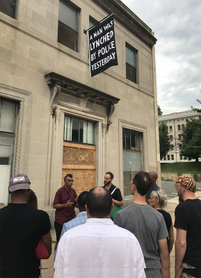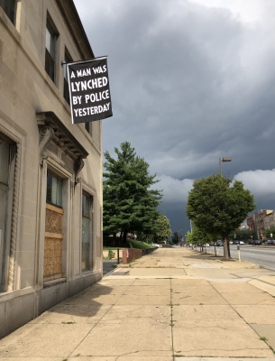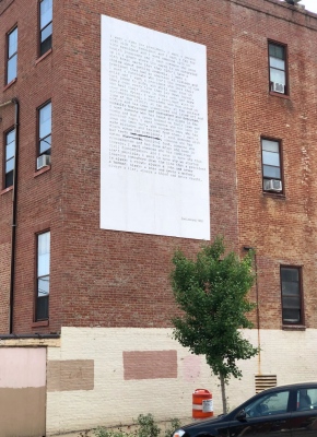In collaboration with local community leader Kelly Cross, once a year del Pesco organized the installation of a temporary public artwork in the Old Goucher neighborhood of Baltimore. All three artworks served as textual 'monuments' (following the removal of confederate monuments in the city) and each, in very different ways, evoked a critical social response to the political moment, and the progressive growing-pains of the city.