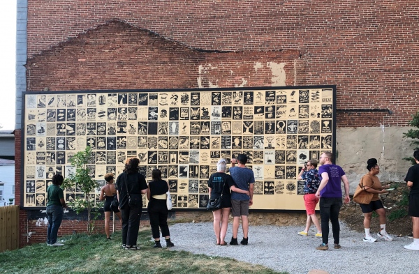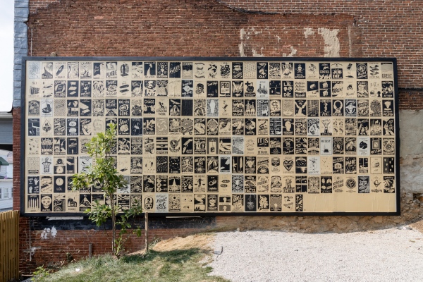 The first outdoor presentation of Piotr Szyhalski's entire series COVID-19: Labor Camp Report featuring 225 drawings, made one per day starting in March of 2020, and continuing until November 3, election day. The installation was printed on newsprint and wheatpasted on a new billboard built specifically for the project on Falls Road in Baltimore.