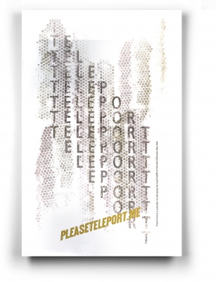 del Pesco commissioned a letterpress poster that used the word TELEPORT, slowly gaining and losing letters, as if the word itself was being teleported, one letter at a time. The Delaware based letterpress shop Lead Graffiti took this breif as a starting point and designed a poster, using wood and lead type, and also bubble-wrap to print a molecular diffusion pattern in metalic ink. The poster was subsequently included in an exhibition at the Hamilton Wood and Type Museum.