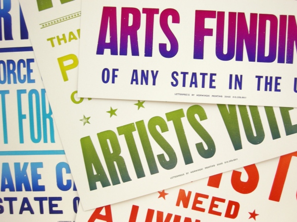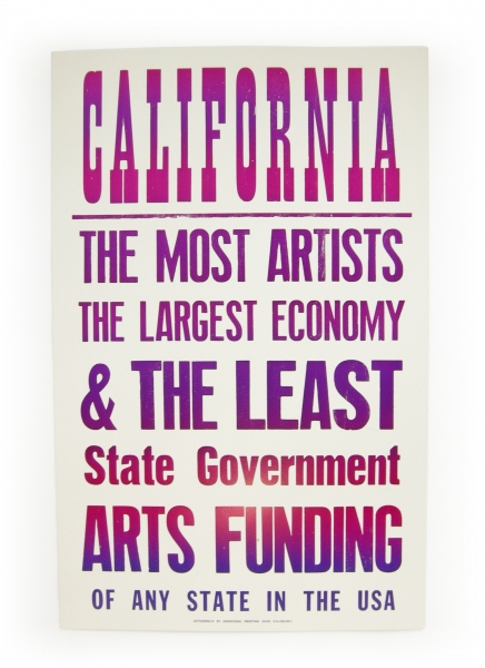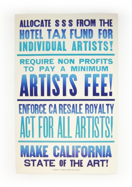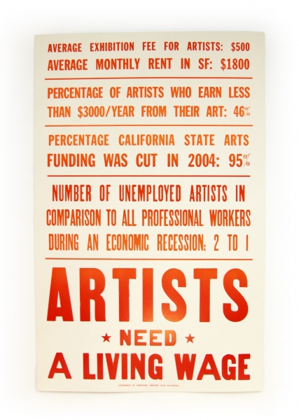 A set of four posters, the outcome of two day-long discussions with a group of artists, was delivered to elected officials in the Bay Area. The series was also republished several times, including in an issue of Proximity Magazine and Artforum (thanks to Julia Bryan Wilson). The edition was also purchased by Blick Art Supply and hung in their stores across California. Published by The Present Group in 2009 and printed by Horwinski in Oakland.