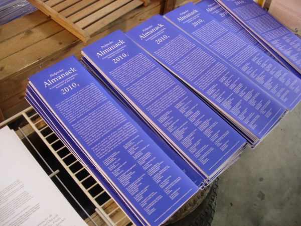 Pickpocket Almanack was a program originally launched at SFMOMA and then, thanks to Francesco Manacorda, del Pesco and Dominic Willsdon were invited to present a version at Artissima, the artfair in Torino, Italy. This printed take-away poster was designed by Scott Ponik, and distributed for free at the fair. It included a variety of short itineraries, and collected (then upcoming) events at cities around the world.
