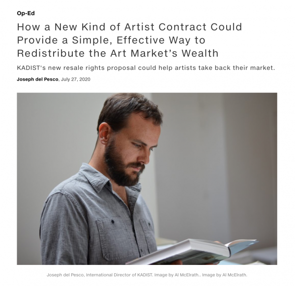 "I wasn’t sure we were onto something until I learned that in 1992 artist Cady Noland, well known for her complex portrayals of a violent and divided America, once attached a contract to the sale of two artworks that set specific terms—if the work was resold, 15 percent of the profits would be sent to Partnership for the Homeless. What little is known about this contract suggests it was attached to two silk-screen prints. Fortunately Partnership is still running decades later, so if those artworks were resold today they would generate an unexpected donation to a deserving nonprofit. And as an incentive for going to the trouble, the (re)seller would be eligible for a tax deduction."